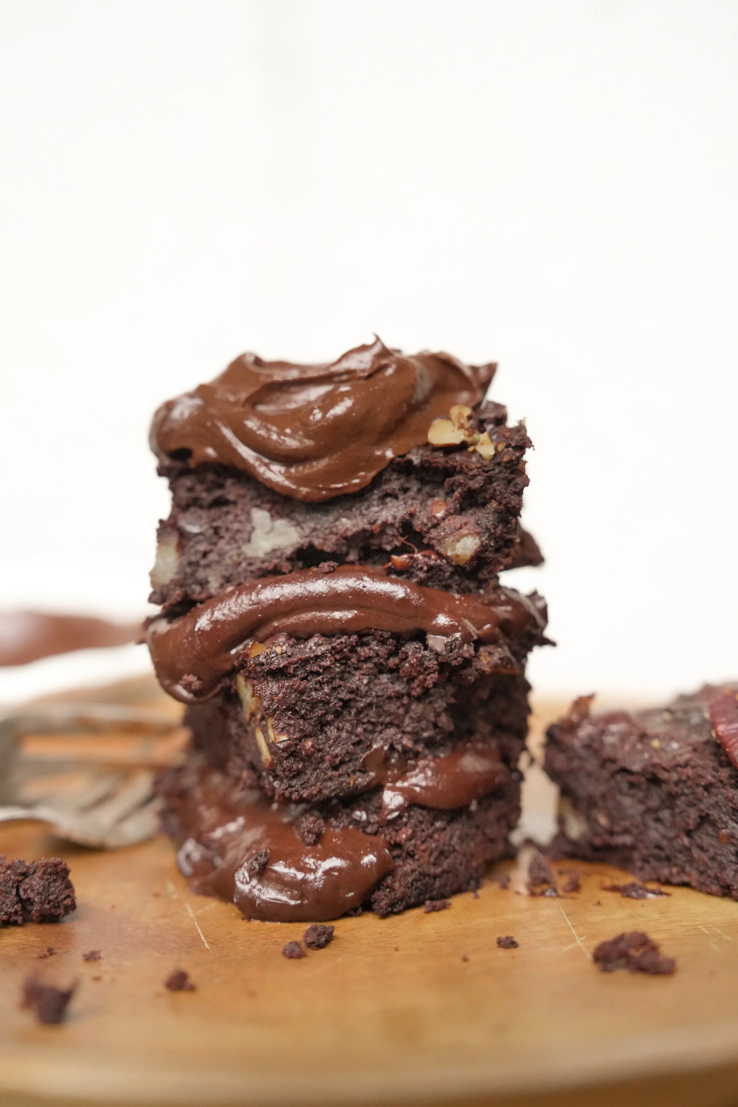 Take the brownies out of the oven and let them cool slightly. Slice and enjoy while still a little warm, topped with the cacao cream - or a scoop of ice cream of choice or simply on their own mhh!